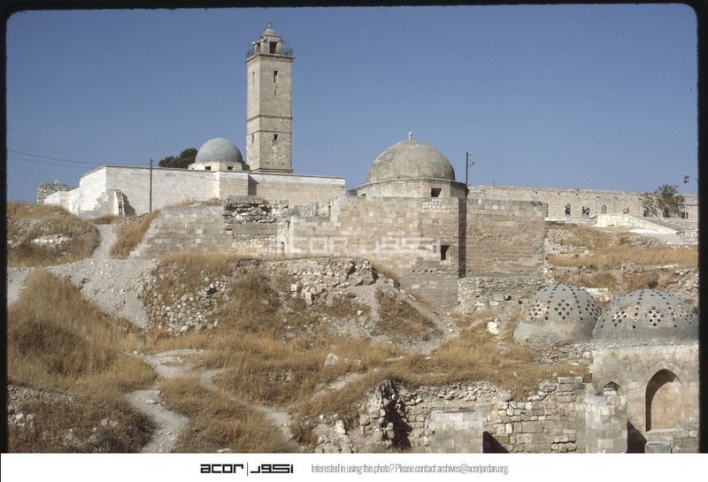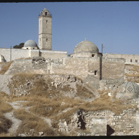 View of the Great Mosque (Upper Maqam Ibrahim) and the Small Mosque (Lower Maqam Ibrahim) of the Citadel of Aleppo