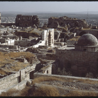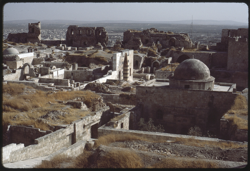 View of the Small Mosque (Lower Maqam Ibrahim) and the Throne Hall entrance in Citadel of Aleppo