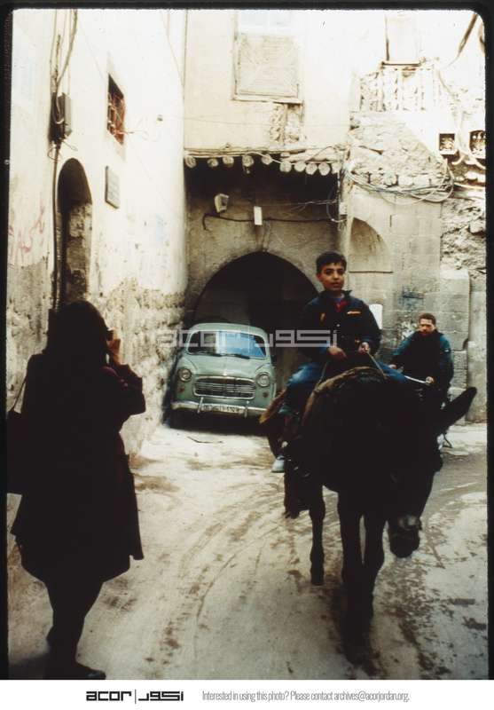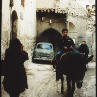 Child riding donkey in Damascene alley