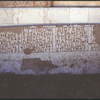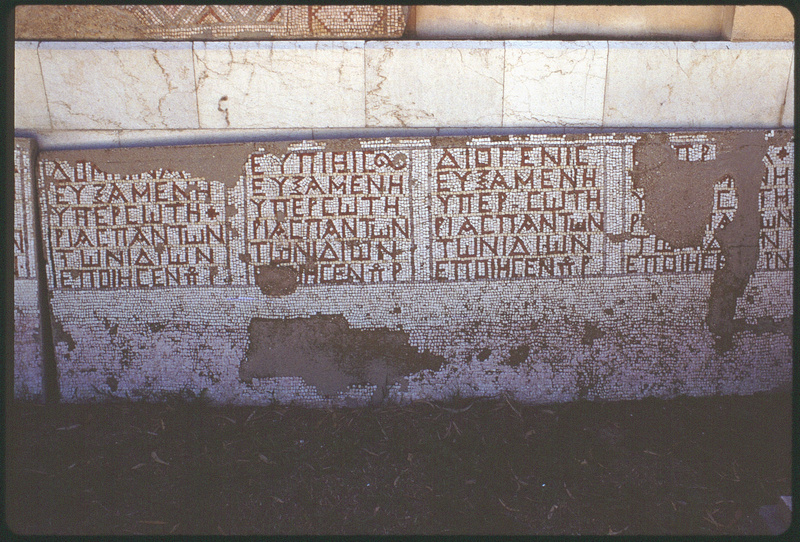 Greek inscription in mosaic tiles in the National Museum of Damascus