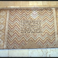 Geometric mosaic with Greek inscription in the National Museum of Damascus