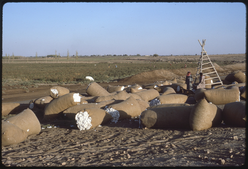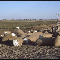 Harvested cotton in sacks in Qal'at al-Rahba area