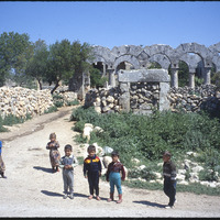 Children in front of arches and columns in East St. Simeon