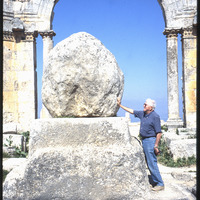 Unidentified man touching Saint Simeon's column