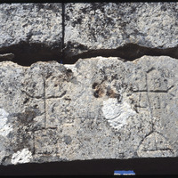 Detail of engraving in pilgrim area of Church of Saint Simeon Stylites