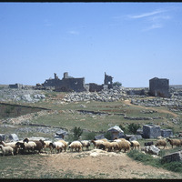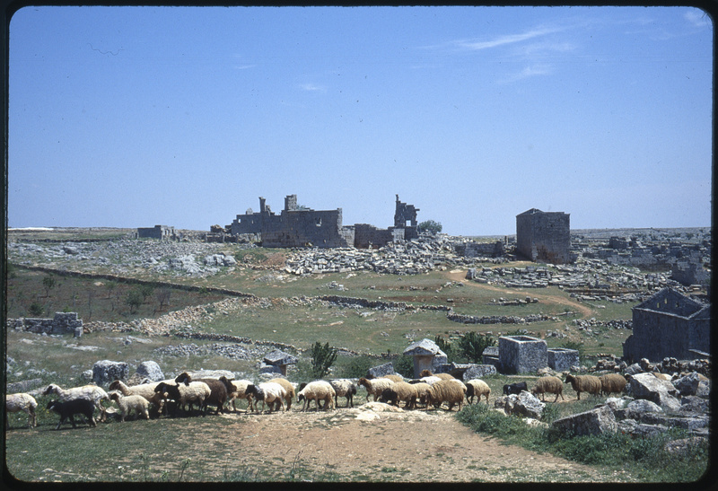 Sheep cattle in front of Serjilla ruins