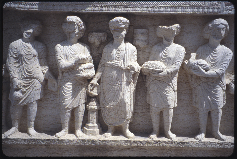 Detail of relief depicting people with gifts