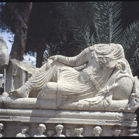 Sarcophagus showing the dead reclining on a couch in the Palmyra Museum