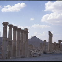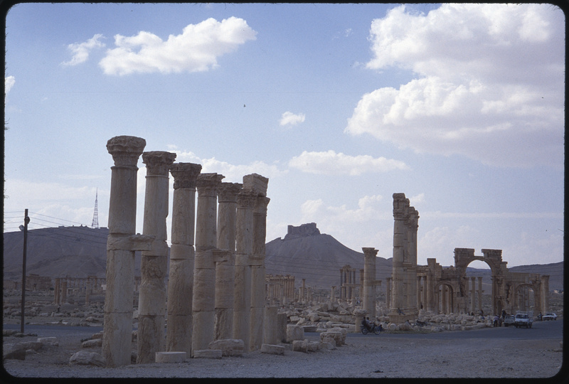 View of the colonnades with Tadmur Castle (Palmyra Palace)