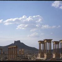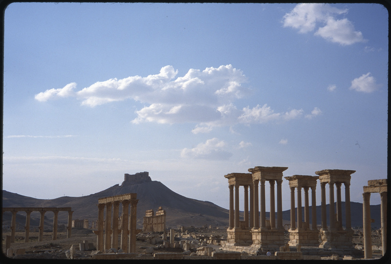 Tetrapylon with colonnades and Tadmur Castle (Palmyra Palace)
