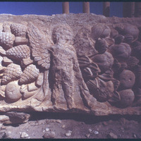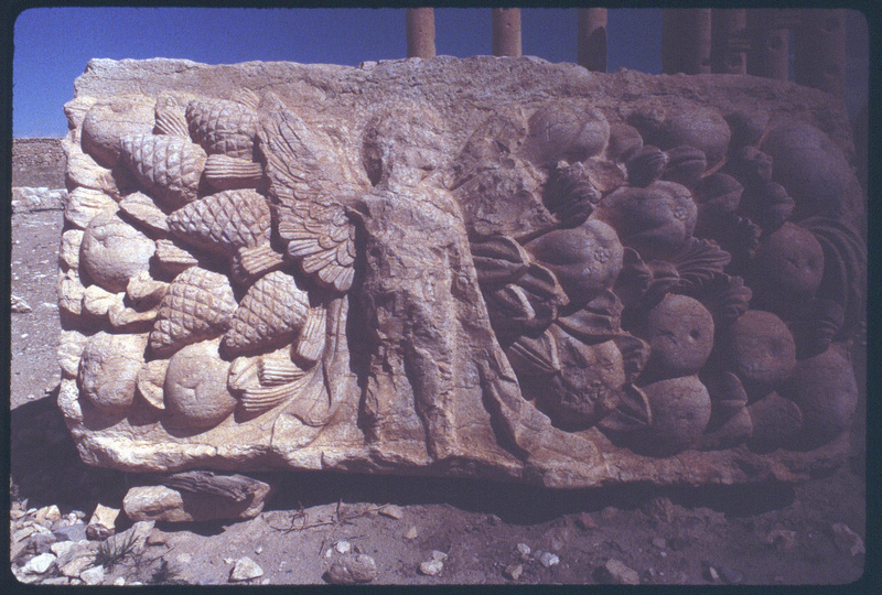 Detail of relief in Temple of Bel depicting angel with fruit and pinecones