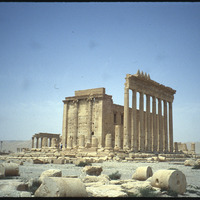 View of south side of Temple of Bel with columns and cella