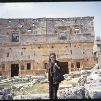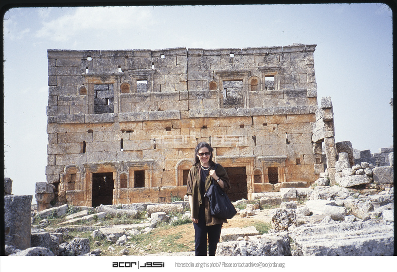 Barbara A. Porter in front of villa ruins in Serjilla