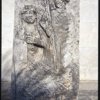 Detail of relief of two people at Idlib Museum