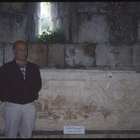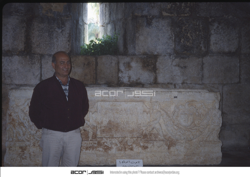 [most probably Nadim Khalil] in front of Roman sarcophagus