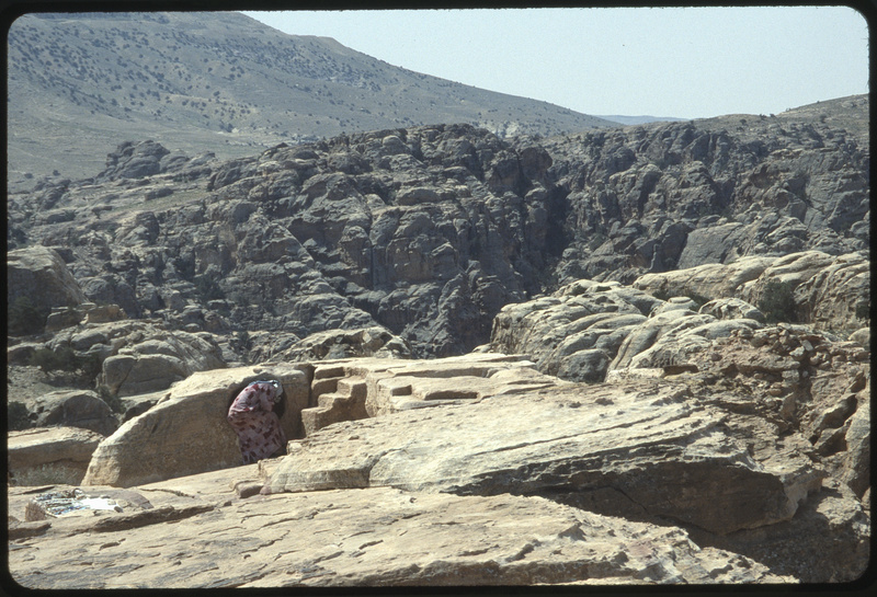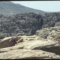 Woman and souvenir stand on the High Place of Sacrifice at Petra