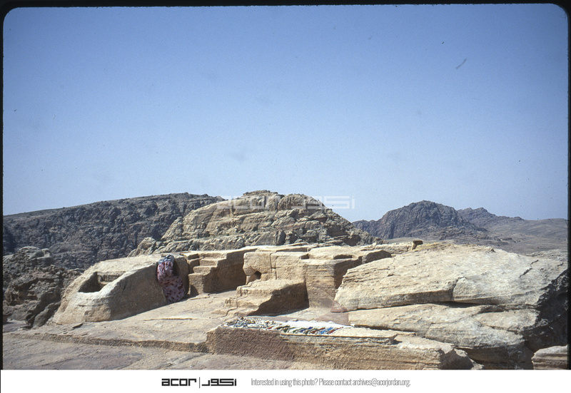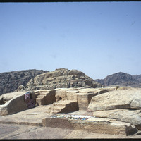 Woman and souvenir stand on the High Place of Sacrifice at Petra