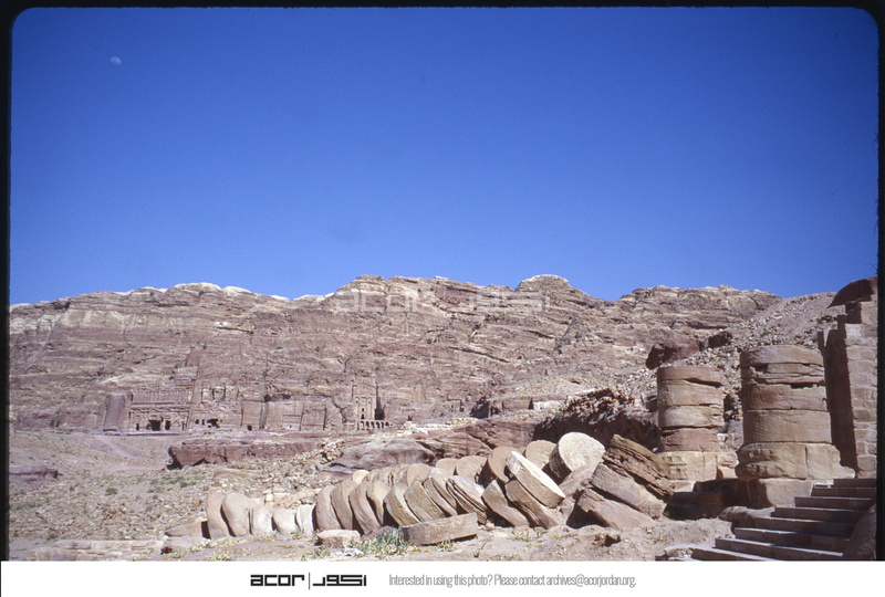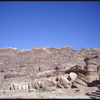 Ruins of fallen columns in the Great Temple of Petra