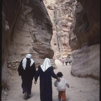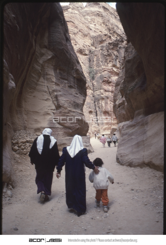 Visitors waking in Siq at Petra
