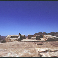 View of High Place of Sacrifice altars on top of the Jebel Madbah in Petra