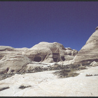 View of High Place of Sacrifice altars on top of the Jebel Madbah in Petra