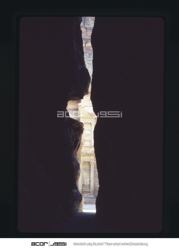 Siq with view to the Al Khazneh (Treasury) in Petra