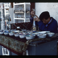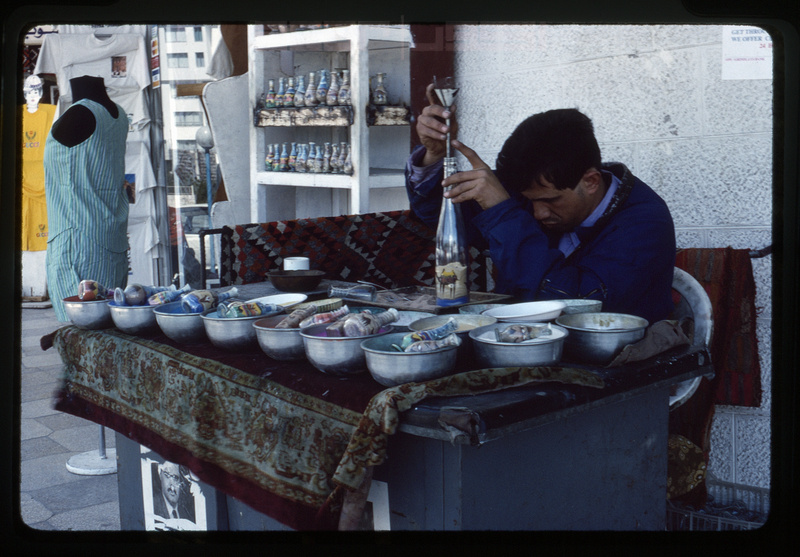 Artist making colored sand bottle in Aqaba city