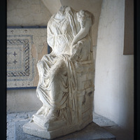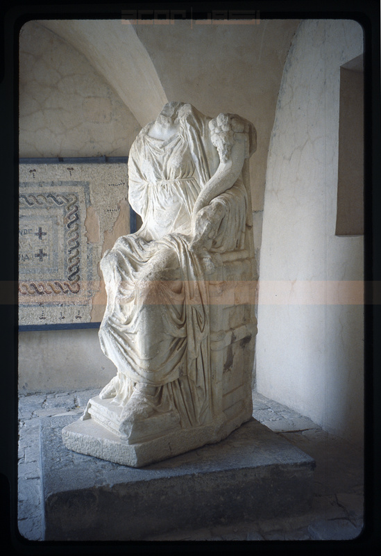 - The seated goddess Tyche and mosaic panel exhibited at Beit al-Rousan (The Archaeological Museum) in Umm Qais