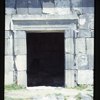 - Doorway of one of the vaulted shops west of the basilical terrace in Umm Qais