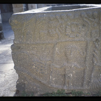 - Basalt sarcophagus with relief carvings from a third century AD exhibited in Archaeological Museum at Umm Qais