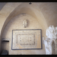 - The seated goddess Tyche and mosaic panel exhibited at Beit al-Rousan (The Archaeological Museum) in Umm Qais