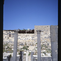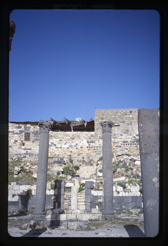 Octagonal Church, basalt stone columns with Cornthian capitals in Umm Qais