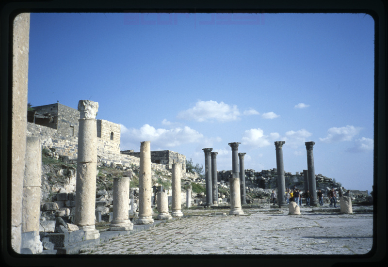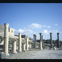 Octagonal Church, basalt stone columns with Cornthian capitals in Umm Qais