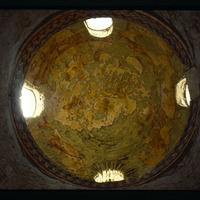Domed ceiling of the second calidarium of the bathhouse inside Qasr Amra