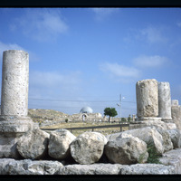 - View of the Umayyad Palace and columns of the ruins of the Temple of Hercule in the Amman Citadel