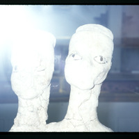 - Close up of two-headed plaster figure from the Neolithic site 'Ain Ghazal, 7th millenium B.C. in Jordan Museum in Amman