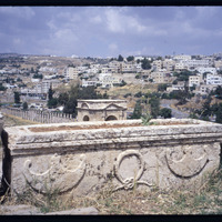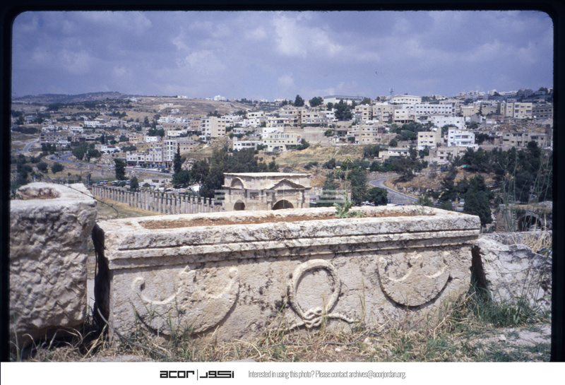 View of the Sarcophagus and North Tetrapylon in the background at Jerash