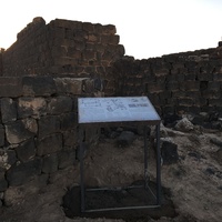 - Jordan. Umm al Jimal, interpretive sign outside House 103 and the Double Church