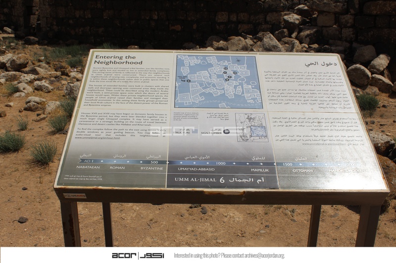 - Jordan. Umm al Jimal, sign before entering the neighborhood