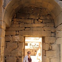 Jordan. Umm al Jimal, cruciform room in the Praetorium looking up at the ceiling moldings