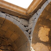 - Jordan. Umm al Jimal, cruciform room in the Praetorium looking up at the ceiling moldings