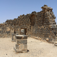 - Jordan. Umm al Jimal, Cathedral, slabs in the middle are the foundation where arches start from