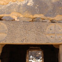 - Jordan. Umm al Jimal, cross on the West Church and detail of lintel