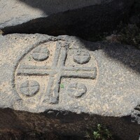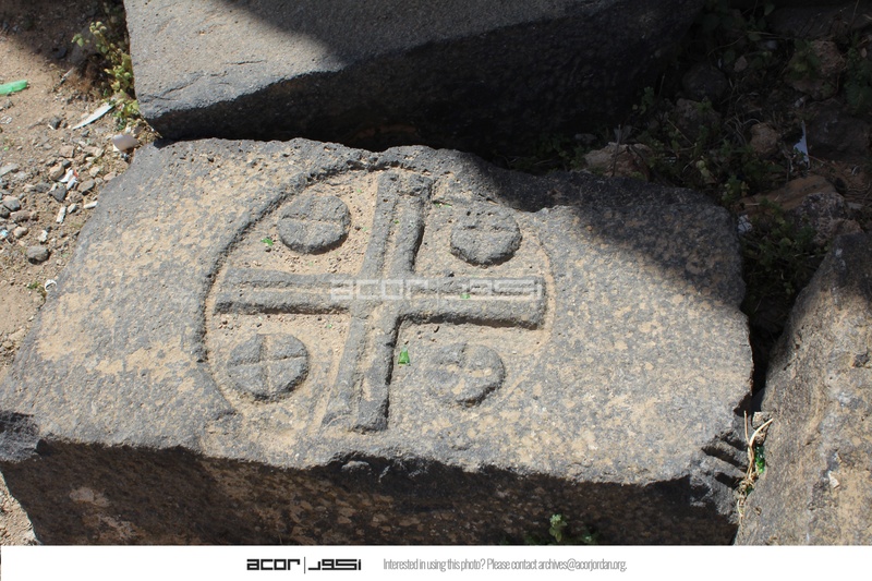 - Jordan. Umm al Jimal, cross on basalt from collapsed arches in the West Church