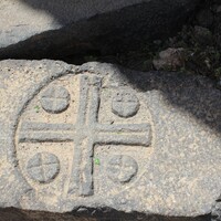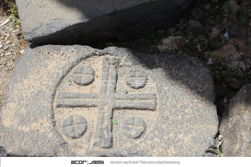 - Jordan. Umm al Jimal, cross on basalt from collapsed arches in the West Church