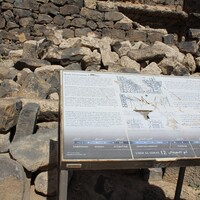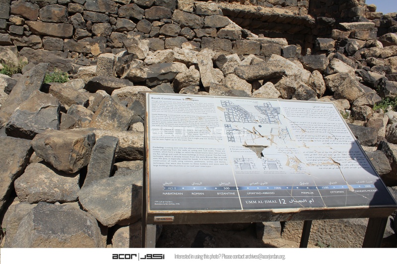- Jordan. Umm al Jimal, interpretive sign describing basalt construction techniques