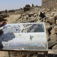 Jordan. Umm al Jimal, sign for House XVIII's Facade and Reservoir