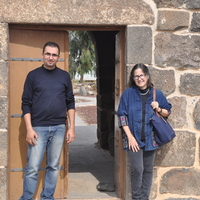 - Jordan. Umm al Jimal, Barbara Porter of ACOR and Nizar Al Adarbeh of USAID SCHEP in front of Interpretive and Hospitality Center