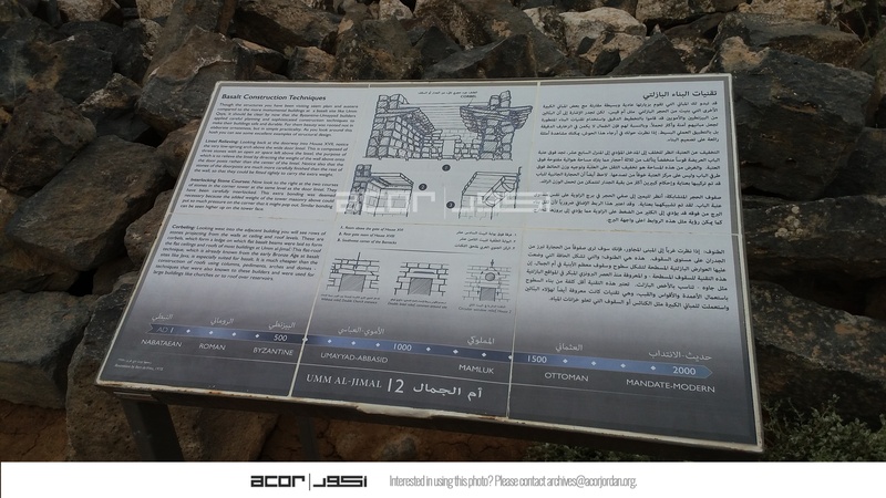 - Jordan. Umm al Jimal, sign about basalt construction techniques