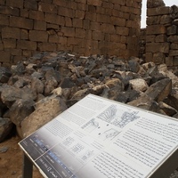 - Jordan. Umm al Jimal, sign about basalt construction techniques
